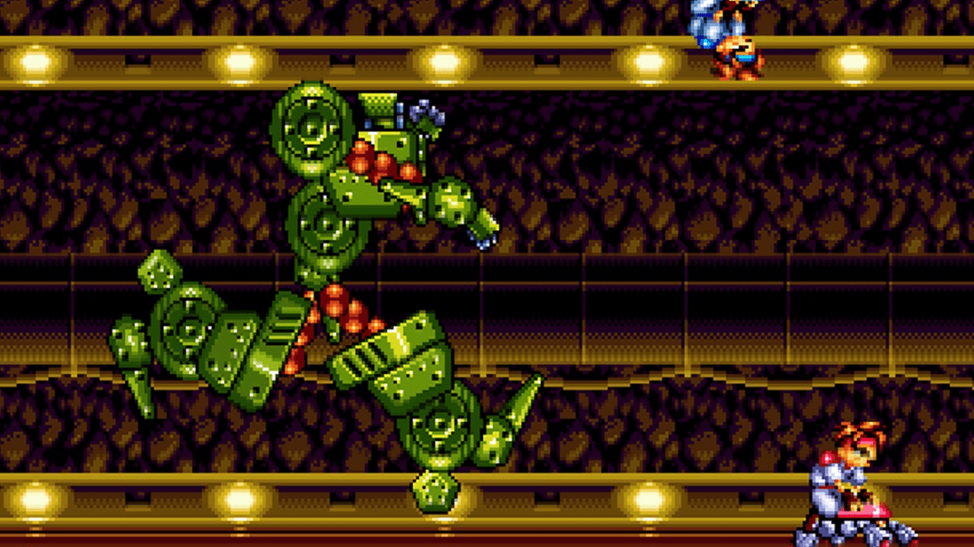 The inclusion of cooperative gameplay is also a boon. It’s always fun to let a friend join in, but this particular game benefits from two players meaning two different weapons. Really, one thing I’ve always missed from this era is the rather common implementation of co-op. Whether it’s something as simple as controlling Tails or being able to play the full game on equal terms as in Gunstar Heroes, I sometimes find myself going back to this era because so few modern games even attempt to replicate the experience. With chaos being one of Treasure’s central tenets, a second player only builds upon the madness of Gunstar Heroes.